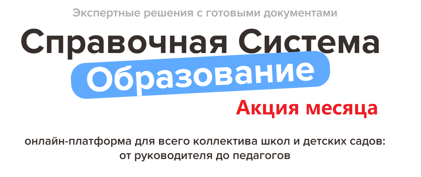 Справочная система Образование – это первая отраслевая справочно-экспертная онлайн система, созданная специально для руководителей школ, детских садов и их заместителей. Она позволяет оперативно решать повседневные задачи, избегать распространенных ошибок, без проблем проходить любые проверки, а также находить готовые решения на самые нестандартные ситуации.
